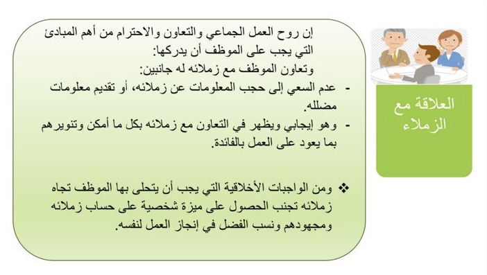 قدمته الدكتورة/ نوره العويد، والهدف منه تعريف الحضور على المفاهيم الأساسية لسلوكيات المهنة وتعميق مفاهيم وأخلاقيات وقيم العمل.