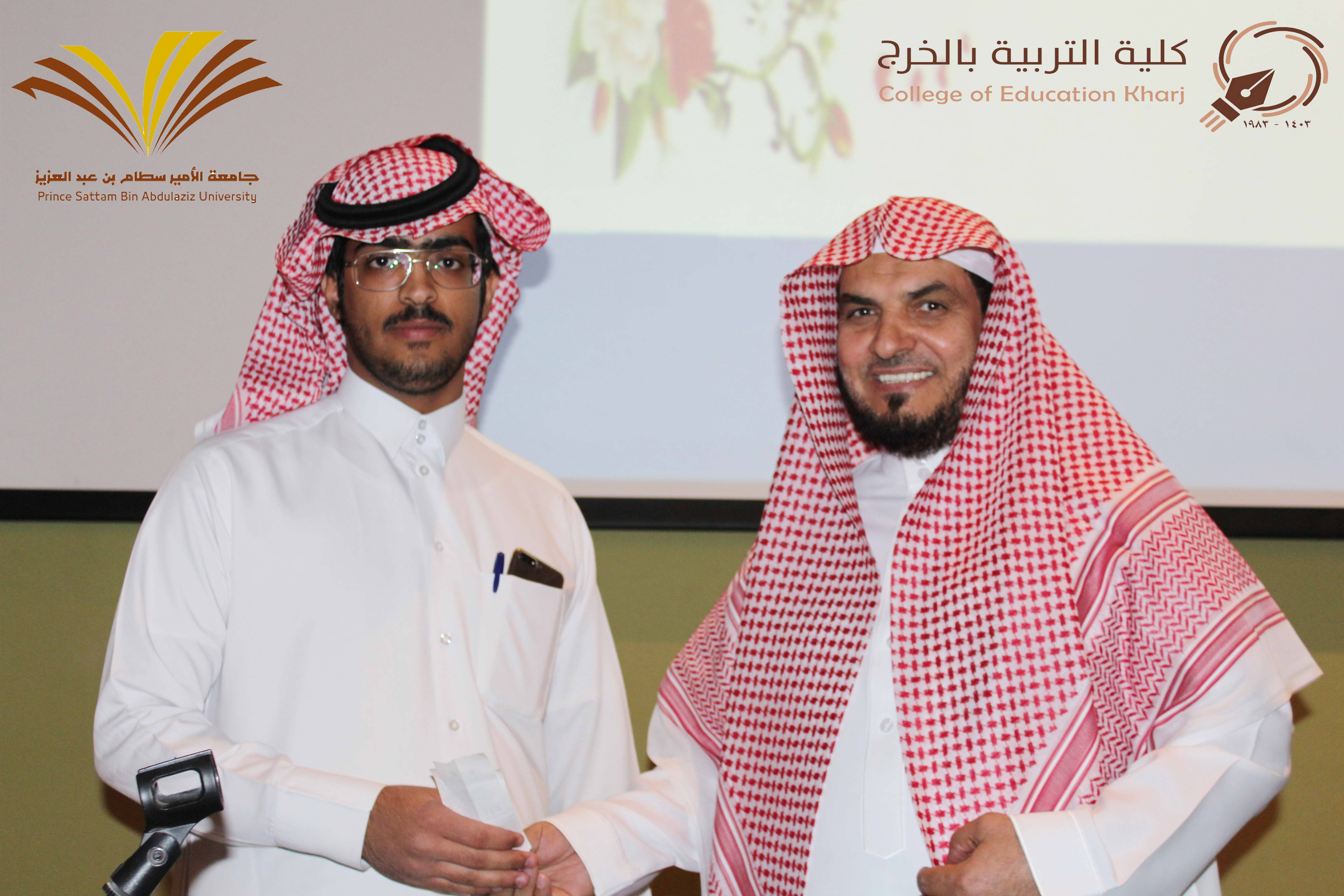 وكان من أهم عناصر اللقاء (مفهوم الحياة الجامعية ، مفاهيم النجاح ، عوامل النجاح في الحياة ، النجاح في الحياة الجامعية) ، وقد حضر اللقاء سعادة عميد الكلية د. عبدالرحمن الرفدي وألقى كلمة في نهاية الحفل وقدم شكره للدكتور حمد على ما أفاد به طلاب الكلية.