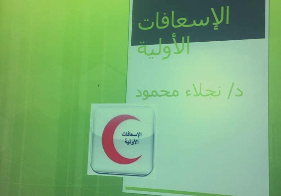 أقام قسم المناهج وطرق التدريس دورة تدريبية للطالبات بكلية التربية الخرج - شطر الطالبات بعنوان : (الإسعافات الأولية والطوارئ) ، وذلك حرصا من القسم على تنفيذ سلسلة من الدورات التدريبية الموجهة للطالبات ، قدمتها د / نجلاء محمود طبيبة كلية التربية بالخرج بالتعاون مع وحدة العمل الطلابي ، وذلك يوم الأحد الموافق 26-2-1440 هـ بقاعة التدريب بالكلية ، وقد اختتمت الدورة التدريبية بالمناقشات الفعالة والمثمرة من قبل الطالبات .وكان الهدف من تحقيق الفعالية كيفية الحفاظ على حياة المصاب, والوقاية من ازدياد الحالة سوءً وكيفية تعزيز إمكانية شفاء المصاب.