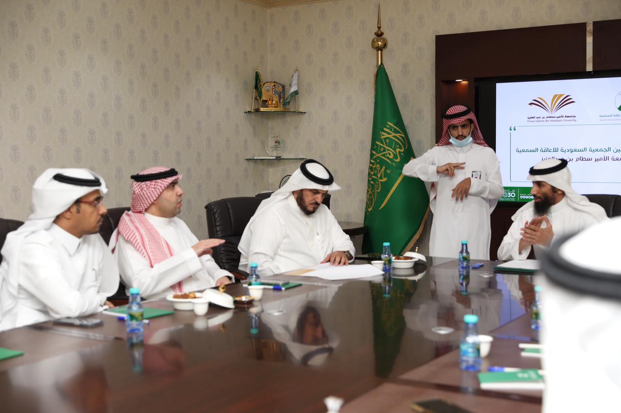 وتهدف الاتفاقية إلى تعزيز التعاون والاستفادة من إمكانات قسم التربية الخاصة في مجال الدراسات والبحوث والخدمات الاستشارية والتدريبية والتأهيلية والتعليمية للأشخاص الصم وضعاف السمع ، ولمن يعمل على رعايتهم وتعليمهم وتدريبهم وتأهيلهم، وشملت مجالات التعاون التدريب على لغة الإشارة والترجمة بلغة الإشارة ، حيث تعدّ جامعة الأمير سطام بن عبد العزيز أولى الجامعات السعودية في طرح مقرر لغة الإشارة السعودية كمقرر اختياري متاح لجميع طلاب الجامعة وطالباتها ، كما أطلقت مؤخراً دبلومًا نوعيًا في الترجمة بلغة الإشارة وهو مصنف من وزارة الموارد البشرية والتنمية الاجتماعية.
