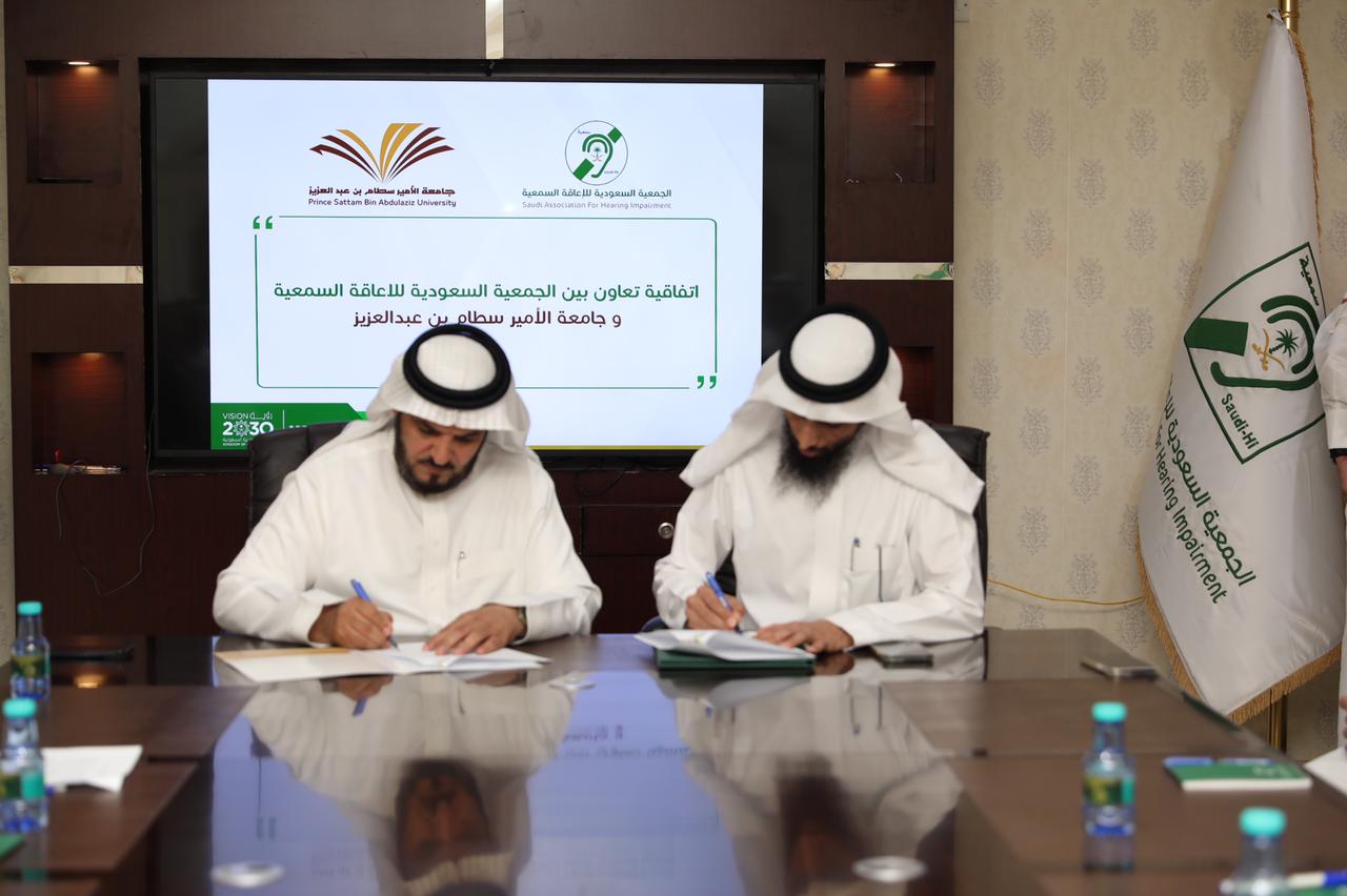 قعت جامعة الأمير سطام بن عبدالعزيز ممثلة في كلية التربية - قسم التربية الخاصة - اتفاقية شراكة إستراتيجية مع الجمعية السعودية للإعاقة السمعية (سمعية). مثل الجامعة في توقيع المذكرة سعادة عميد كلية التربية بالخرج الدكتور/ عبدالرحمن بن عبيد الرفدي، وعن سمعية رئيس مجلس إدارة الجمعية الأستاذ/ علي بن محمد الحلافي، وذلك يوم الأربعاء ١٤/ ١٠/ ١٤٤٢هـ الموافق ٢٦/ ٥/ ٢٠٢١م في مقر سمعية بالرياض.