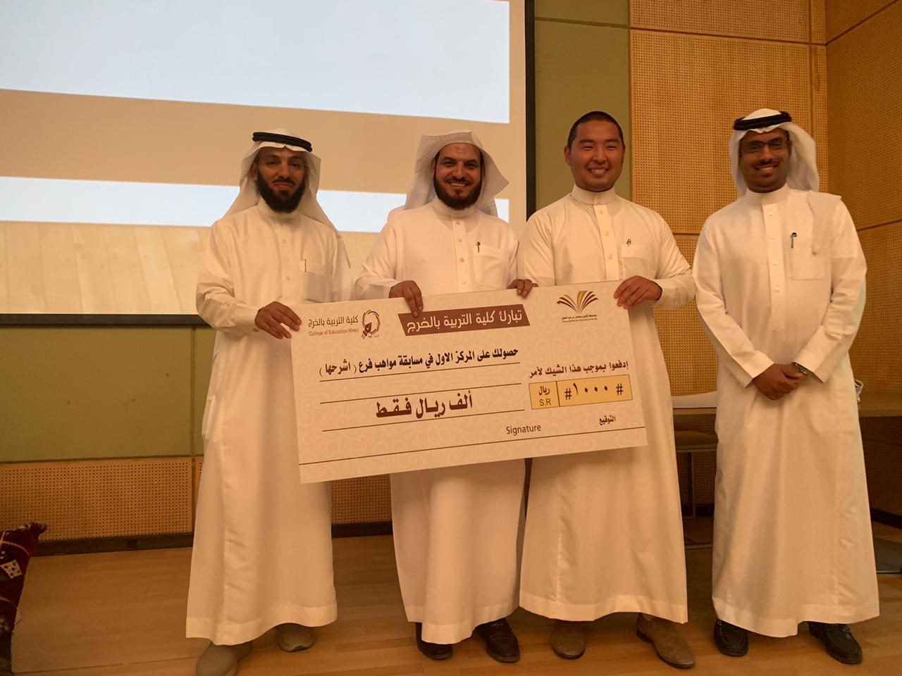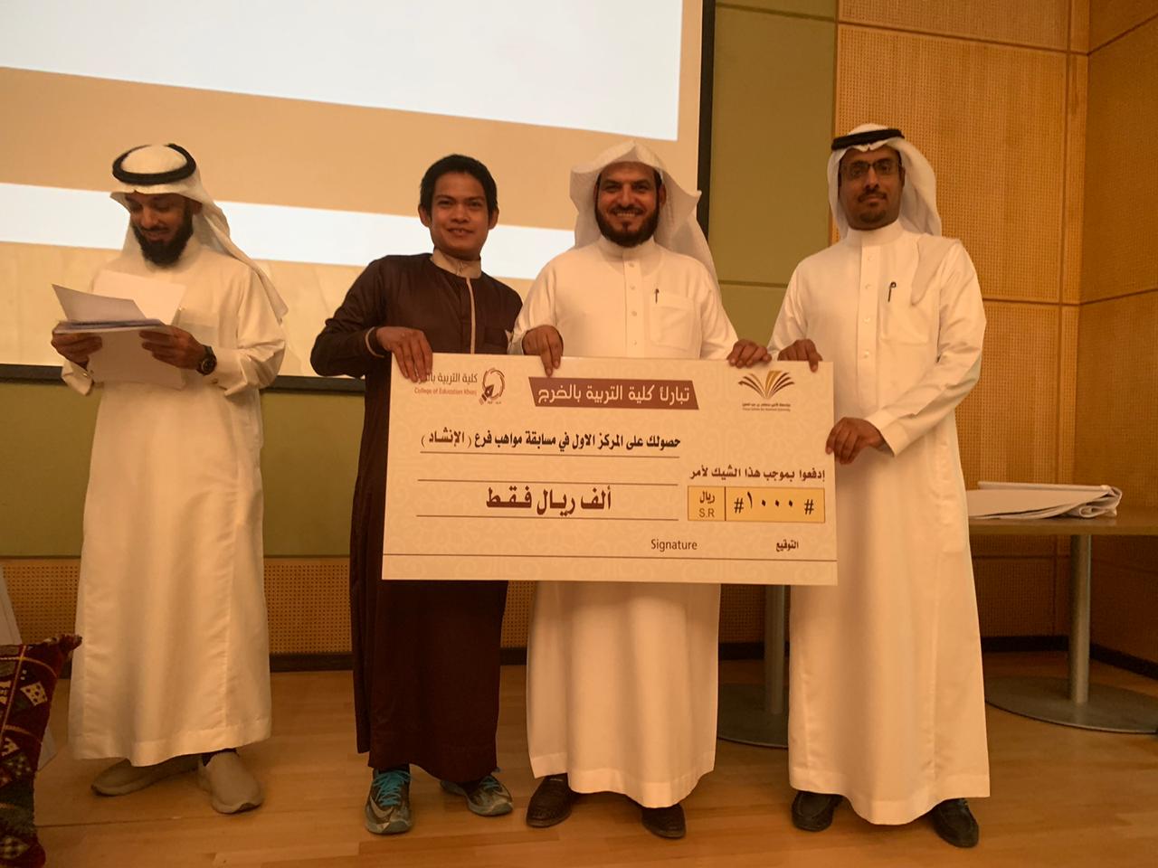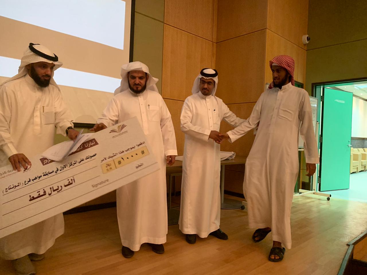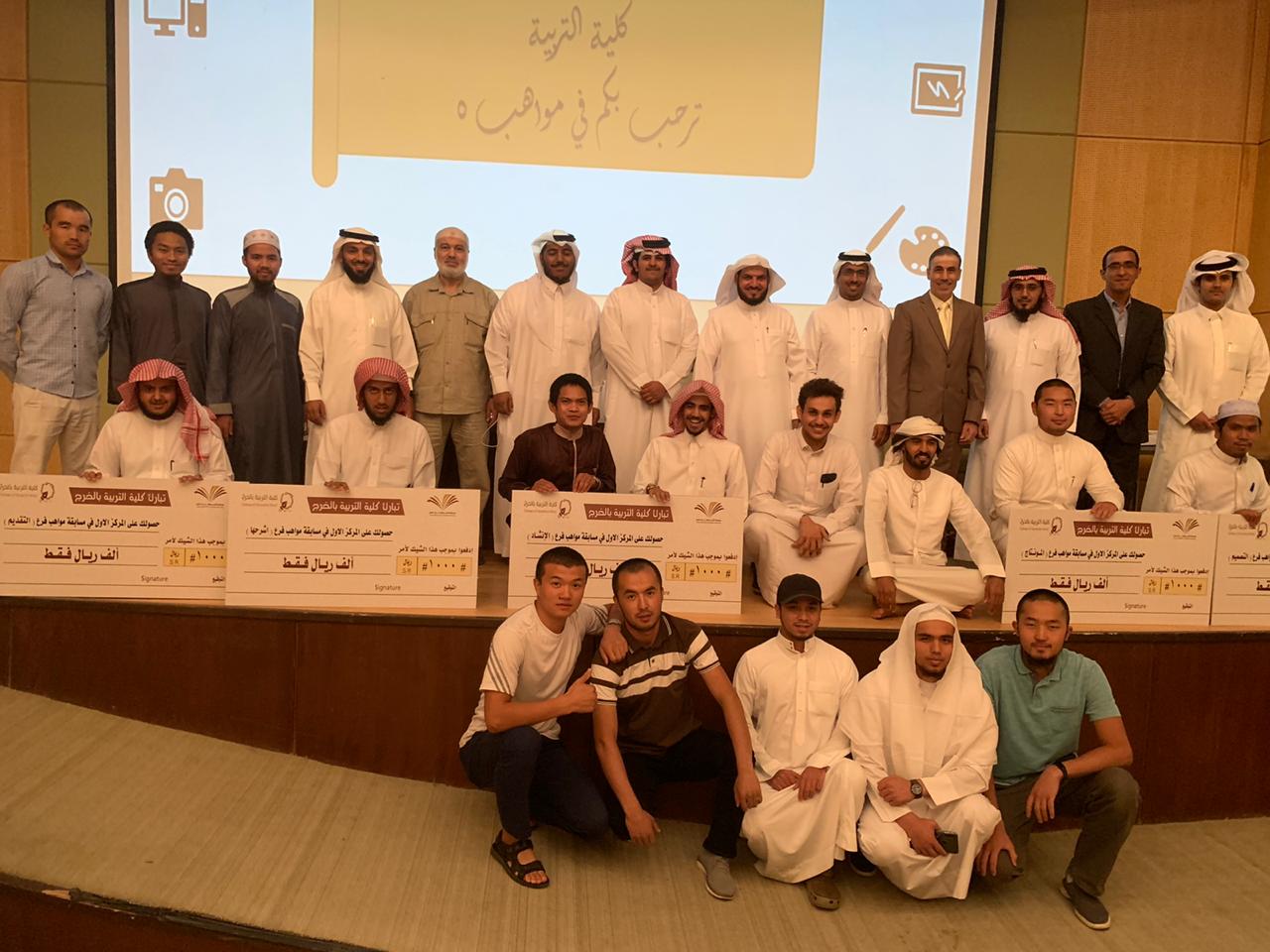 على شرف عميد الكلية الدكتور عبدالرحمن الرفدي وبحضور وكيل الكلية الدكتور مبارك الوزرة و أعضاء لجنة التقييم من عمادة شؤون الطلاب أ. راشد العسكر و أ. شبيب السبيعي أقام النشاط الطلابي التصفيات الأولية لمسابقة مواهب 5. وقد قدم الطلاب مواهب متعددة شملت : التقديم و التصوير و المنتاج و الإنشاد و غيرها و تفاعل الجمهور مع مواهب الطلاب و إبداعاتهم . الجدير بالذكر أن طلاب المنح قد شاركوا إخوانهم في هذه المواهب , فقدموا مواهبهم في الإنشاد و في العرض و في التصوير . و في ختام الحفل كرم العميد الطلاب الفائزين أصحاب المراكز الأولى ، ثم أُخذت الصور التذكارية مع عميد الكلية .