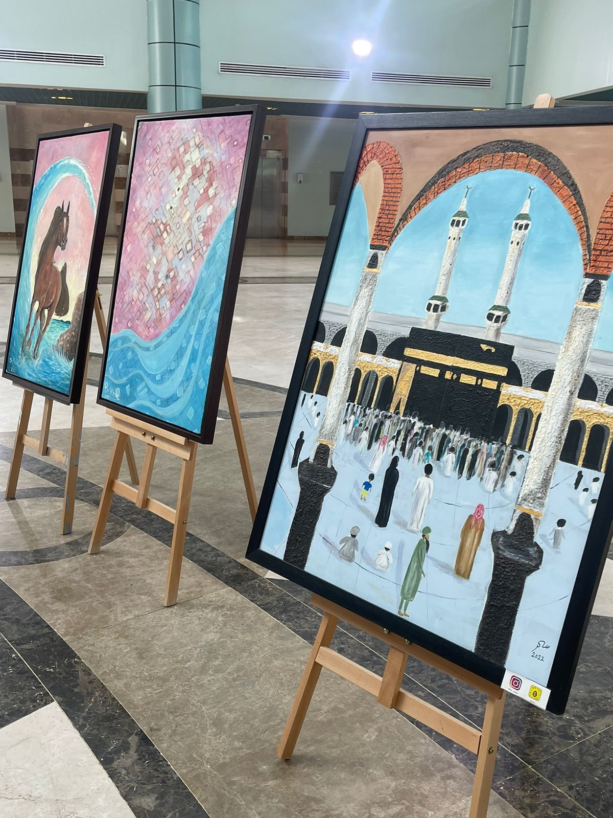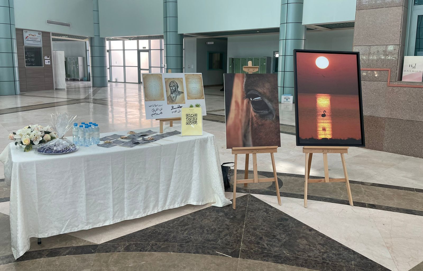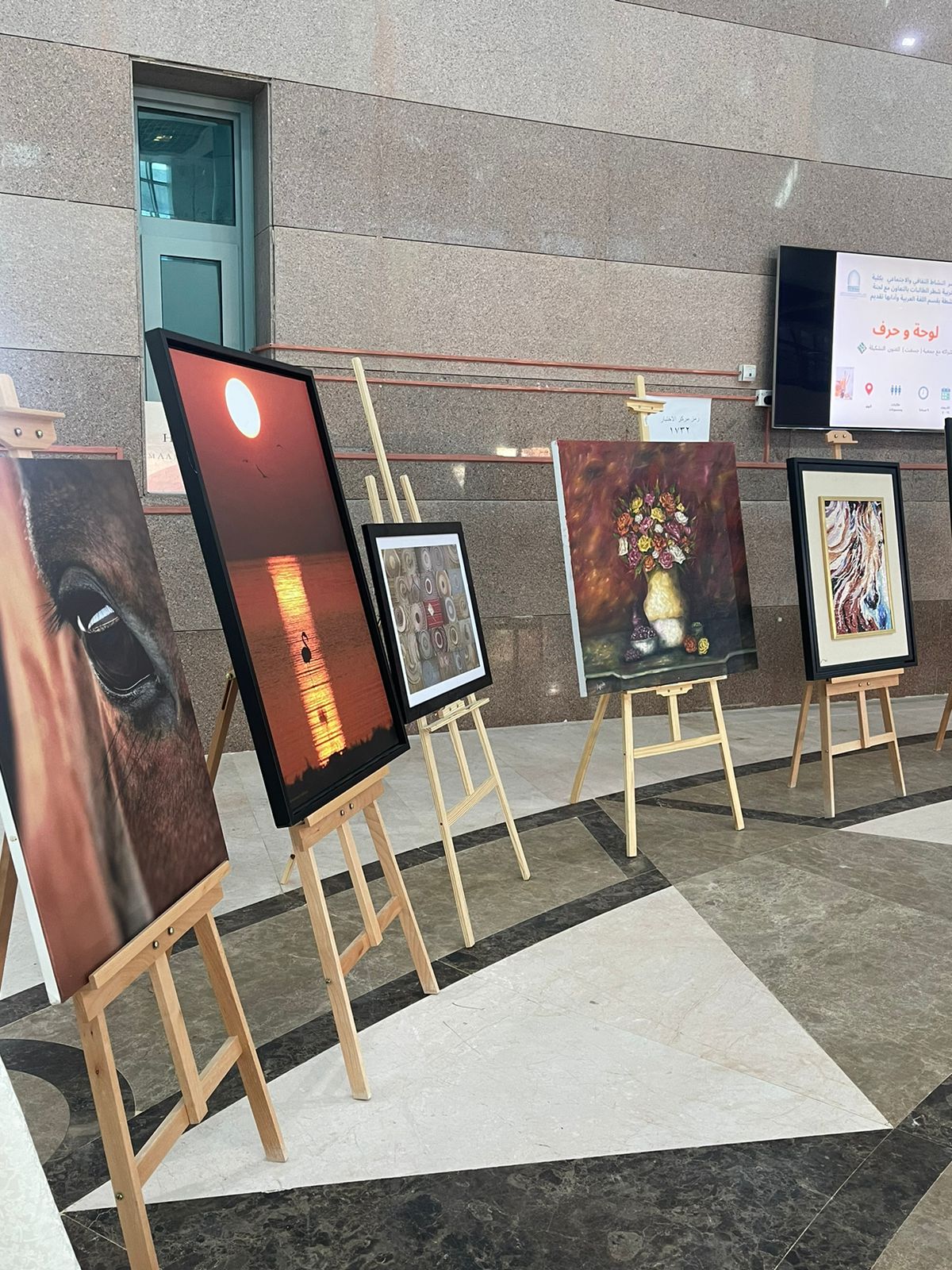 حيث افتتحته سعادة وكيلة الكلية للشؤون التعليمية والأكاديمية الدكتورة منيرة العسكر رئيسات الأقسام، ويهدف المعرض إلى الجمع بين فن الرسم والتعبير الأدبي من خلال تذوق الجمال الداخلي التي تدل عليه اللوحات المعروضة، ومن ثم استلهام أبيات شعرية أو مقولات أدبية معبرة.