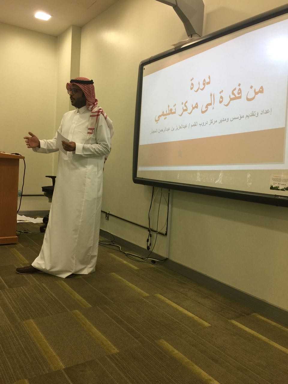 أقامت وحدة الخريجين بكلية التربية برئاسة د. فيصل القريني محاضرة بعنوان "من فكرة إلى مشروع تعليمي: محاضرة في ريادة الأعمال"، يوم الأربعاء بقاعة الدراسات العليا. حيث تطرق الأستاذ عبدالعزيز المعيذر إلى العديد من المحاور من أبرز هذه المحاور: