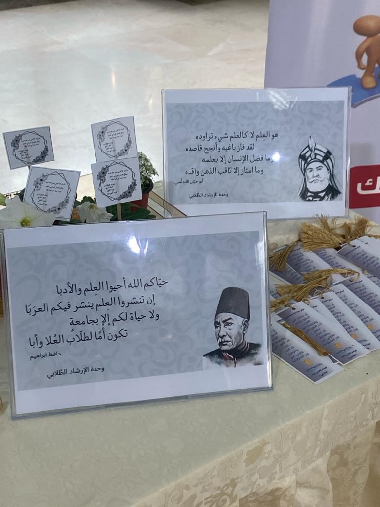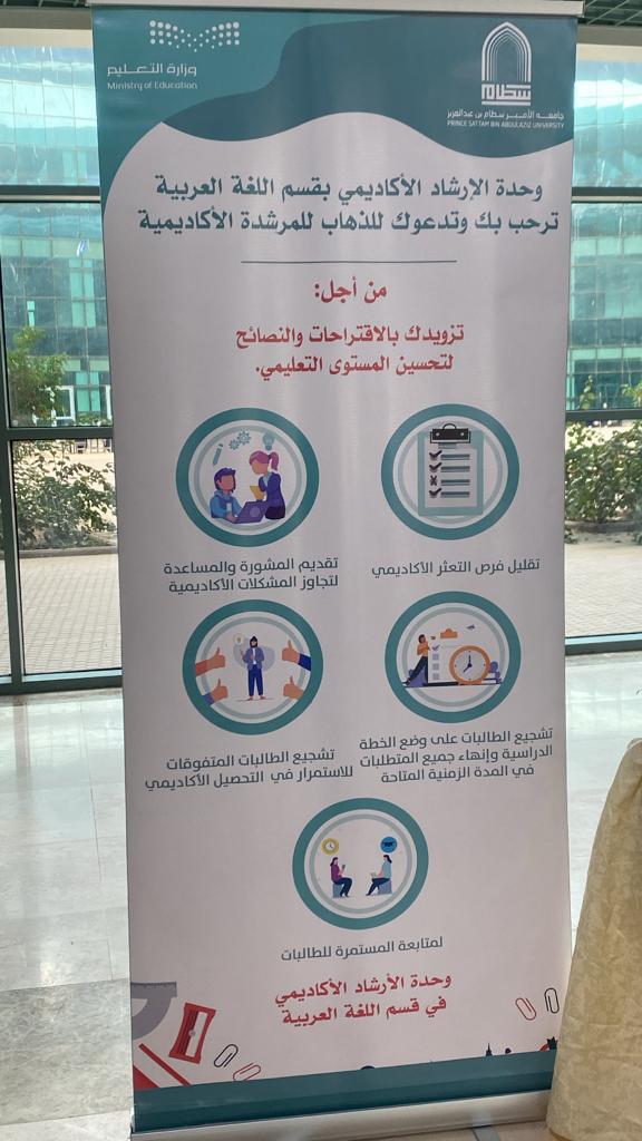 نظمت لجنة الارشاد الأكاديمي بقسم اللغة العربية بكلية التربية تحت اشراف الدكتورة/ منال الغرير، وبمبادرة مجموعة من طالبات القسم تحت اشراف الدكتورة/ جوهرة العنبر، ركنا خاصاً لاستقبال الطالبات مع بداية الفصل الدراسي الثاني، وذلك صباح يوم الثلاثاء 18رجب لعام 1445هـ بالبهو.