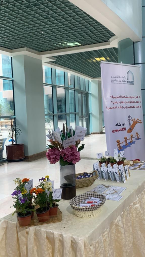 حيث تضمن الركن ترحيب الطالبات بزميلاتهن وتعريفهن بأهمية الإرشاد الأكاديمي وتقديم توزيعات مرفقة بعبارات تشجيعية للطالبات للتفوق والنجاح كما تضمن عرض لوحات تعريفية للتعريف بدور الإرشاد الأكاديمي وأهميته للطالبة الجامعية