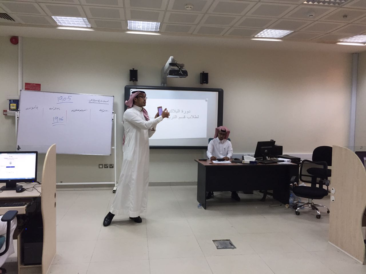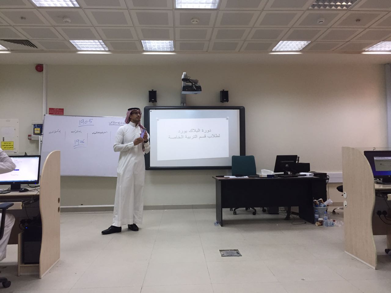 في إطار سعي قسم التربية الخاصة بكلية التربية بالخرج لتطوير مهارات طلابه، قدّم الدكتور سعيد القحطاني من منسوبي القسم -برعاية عميد الكلية الدكتور عبد الرحمن بن عبيد الرفدي، ووكيل الكلية الدكتور فيصل الشدّي، ورئيس القسم الدكتور مبارك الوزرة- ورشة تدريبية لطلاب القسم تتناول آلية استخدام البلاك بورد وكيفية التعامل معه.