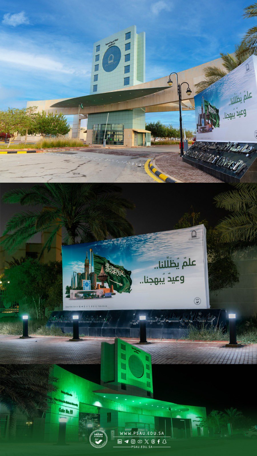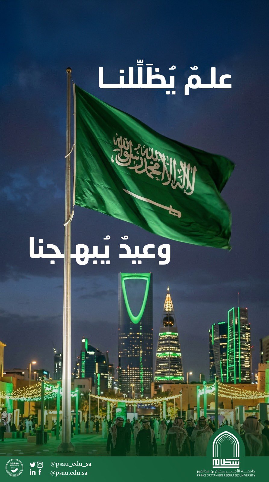 احتفت جامعة الأمير سطام بن عبدالعزيز بيوم العلم برفع العلم السعودي في أرجاء الجامعة وطرقاتها، وإضاءة بواباتها ومحيطها باللون الأخضر تعبيرًا عن الاعتزاز براية الوطن ورمز وحدته.