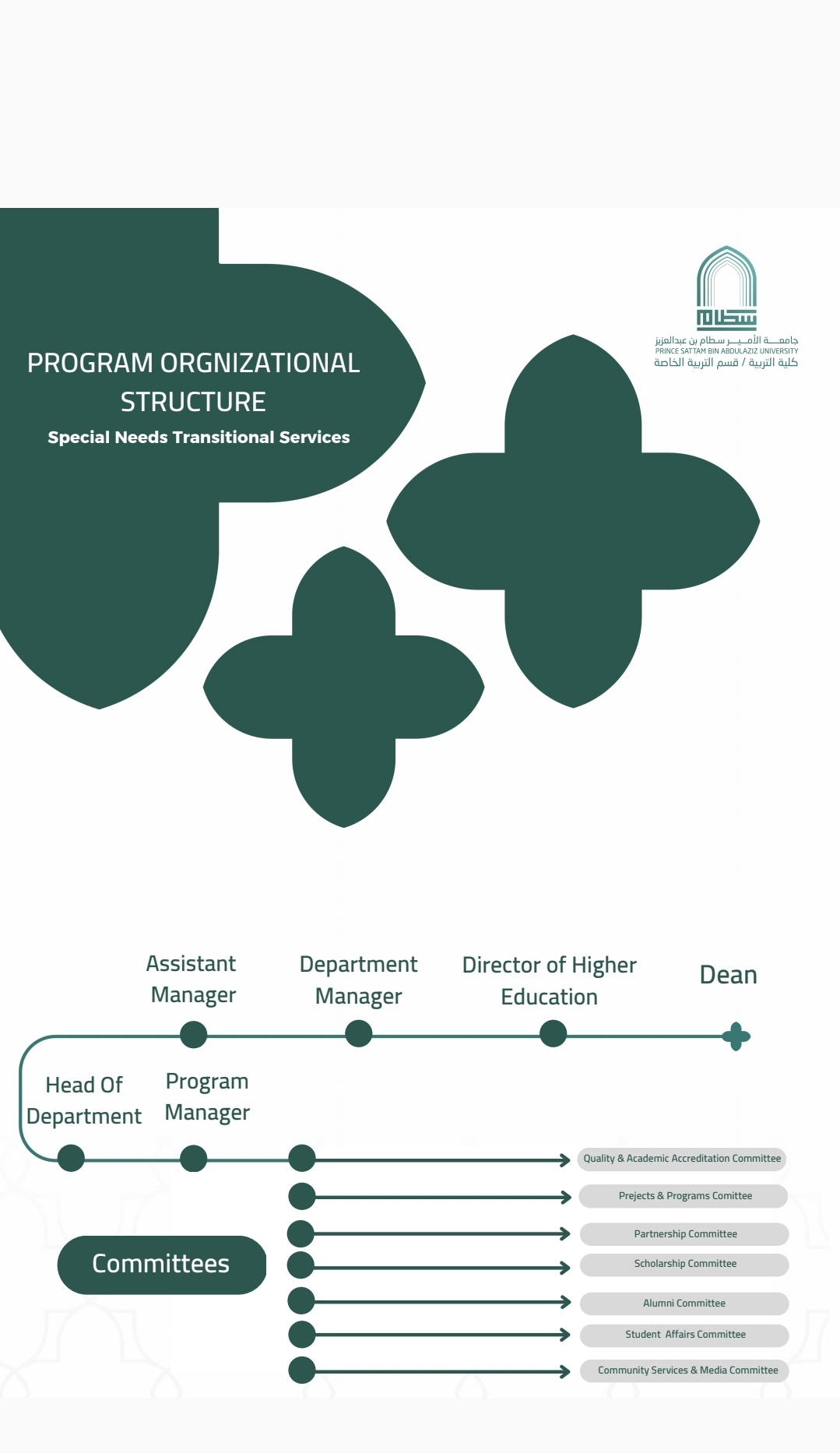 The lack of qualified specialists in transitional programs in the Kingdom at the present time, to support the process of transitioning individuals with disabilities to post-secondary level. The lack of such a specialization in the master's programs currently offered at the level of universities in the Kingdom of Saudi Arabia and Arab universities, noting that this specialization is offered at the level of prestigious universities in Western countries, such as the University of Kansas and George Washington University. The availability of a cadre of faculty members who are currently present, and there are also a large number of scholarship students, most of whom are about to graduate, which confirms the ability to develop a distinguished master’s program at the level of the Arab world.