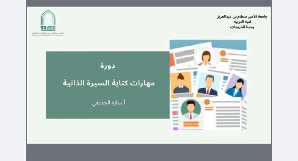 The Alumni Unit, represented by the Professional Guidance Committee at the College of Education, organized a training course entitled: (CV Writing Skills) presented by Mrs. Sarah Al-Jadaie, on Sunday evening, 4/28/1445 AH, via Zoom.