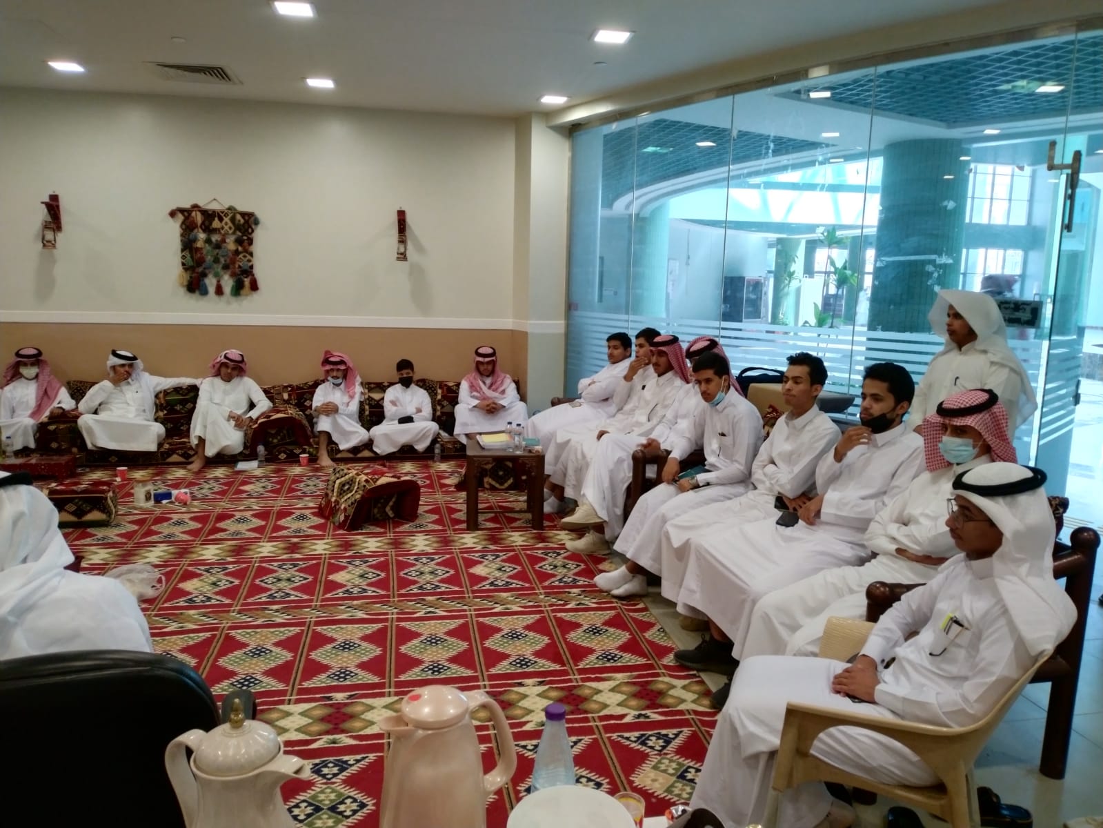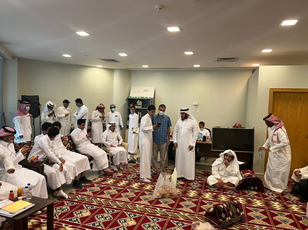 The students were directed and interviewed, and their questions were answered by His Excellency Dr. Faisal Al-Asiri, the supervisor of the Irada Club and the associate professor at the college, and His Excellency Dr. Attia Abdel Hamid, the supervisor of the activities unit and the assistant professor at the college.
