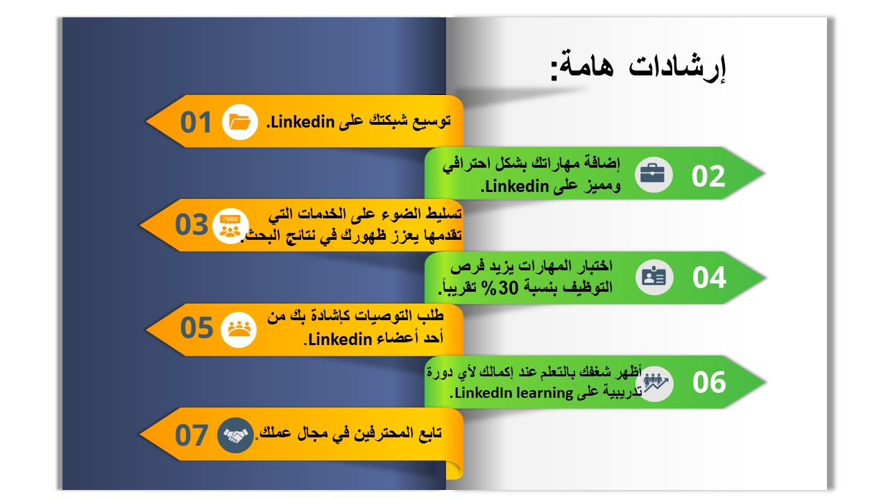 At the conclusion of the course, practical application was given on how to create a professional account on Linkedin network, and the importance of adding skills in a professional and distinctive manner on Linkedin, highlighting the services provided by the account that enhance visibility in search results, demonstrate passion for learning, and follow professionals in the same field of work and specialization.