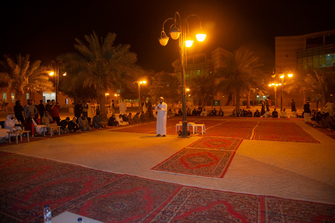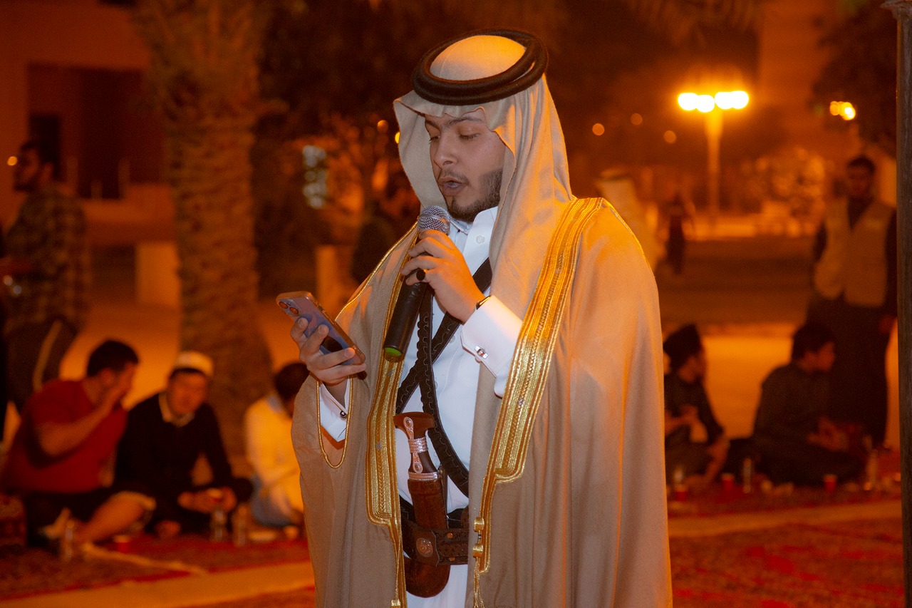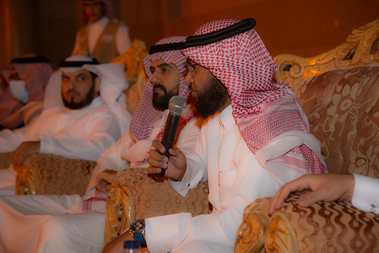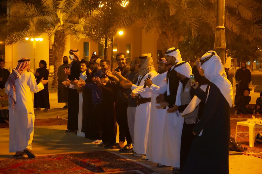 The ceremony, which was attended by a large number of students, staff and faculty members of the university, included many cultural and entertainment paragraphs, including a speech by the Dean of the College of Education, Dr. Chanting, cultural competitions, the art of imitation of voices, kinetic games, the Najd prostration and the daha. The joyful meeting ended with dinner.