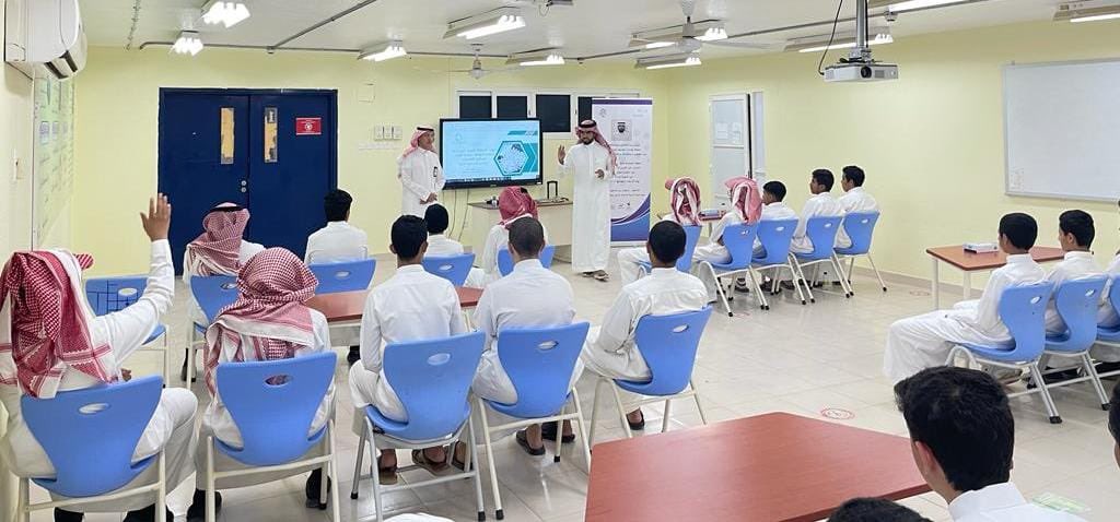 the Dean of the College of Education in Al-Kharj at Prince Sattam bin Abdulaziz University, Dr. Salman Al-Otaibi, presented a workshop for students on Wednesday morning 11/4/1444 AH entitled: “The efforts of the Kingdom of Saudi Arabia and its institutions in protecting youth from the harms of drugs: prevention from the spread of crystal meth as a model”, which comes Within the activities of the awareness exhibition on the harms of drugs, "A Safe Generation", which is held in Ibn Al-Nafis High School in Al-Kharj Governorate, in partnership with the Intellectual Awareness Unit.