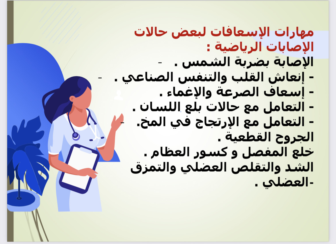 - Dealing with cases of dislocation of the joint, bone fractures, stretching, contracture, muscle rupture, and the method of treating cut wounds.