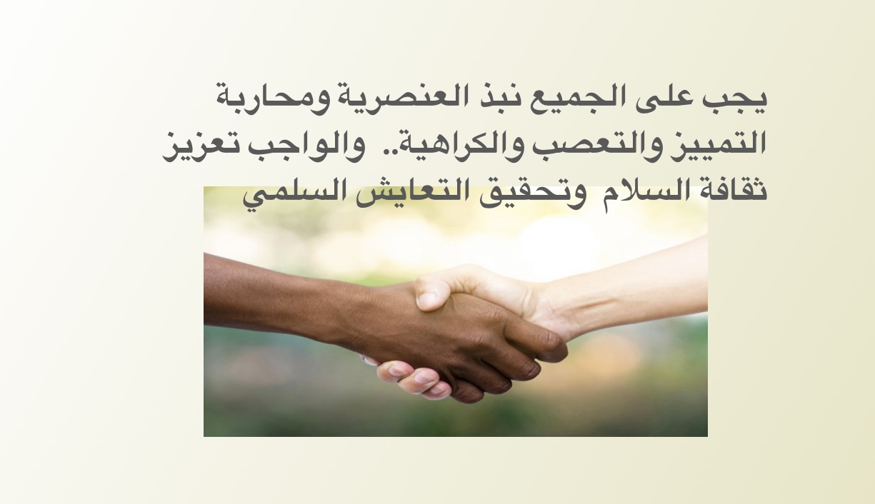 Where Mrs. Noura Al-Tamimi gave a lecture in which she dealt with the definition of human brotherhood and the culture of peace and its promotion, the importance of dialogue and the values of tolerance in Islam in order to reach peaceful coexistence, and the role of education, the family and society to create generations fortified with morals and internal security to resist and oppose all manifestations of racism, terrorism and discrimination, respect for life and end violence from Through education, dialogue, cooperation, full respect for and promotion of all human rights and fundamental freedoms, rejection of racism and bullying, and combating discrimination, intolerance and hatred.