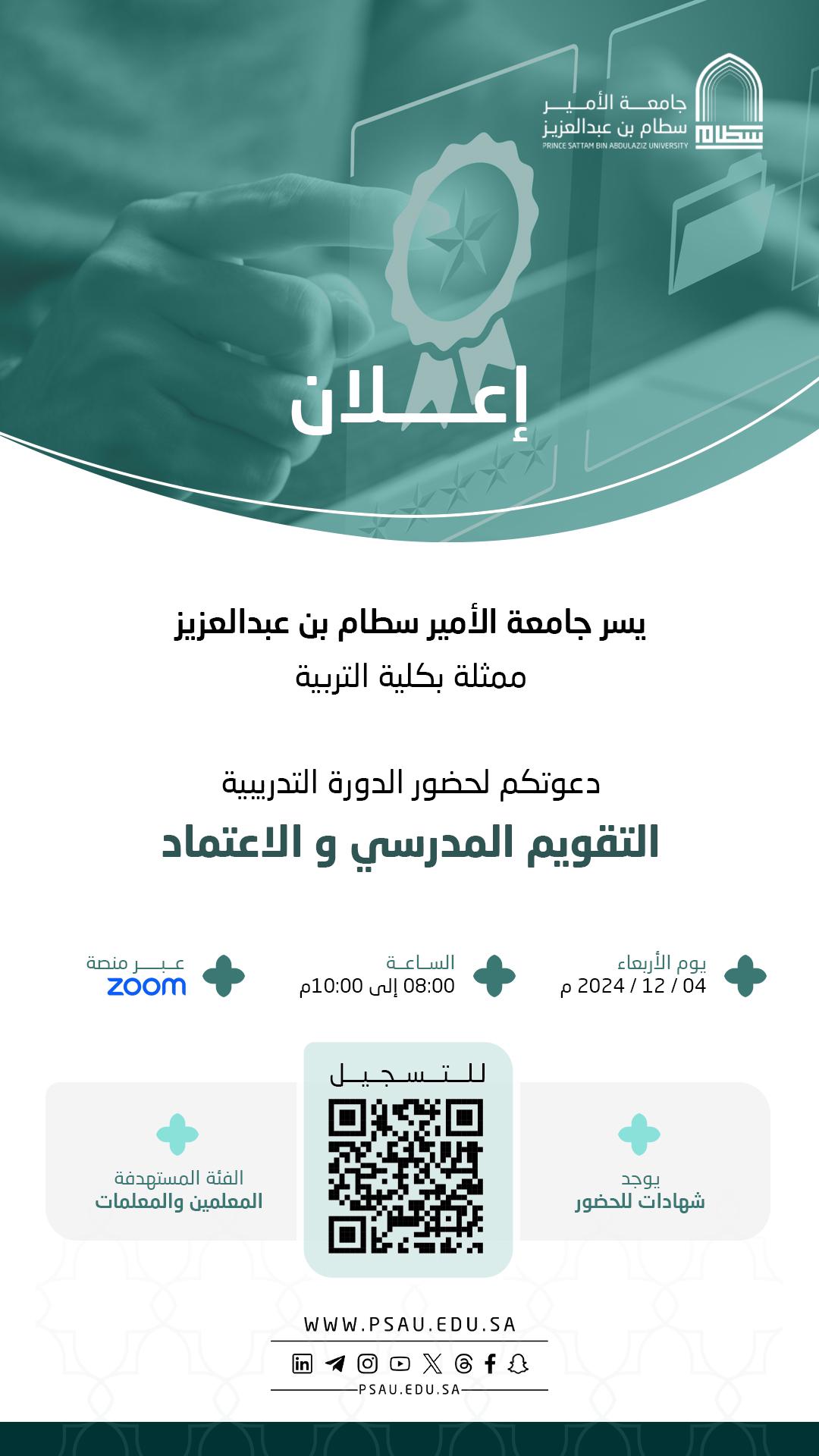 (School Evaluation and Accreditation), on Wednesday 4/12/2024 at 8:00 PM via Zoom, targeting male and female teachers,